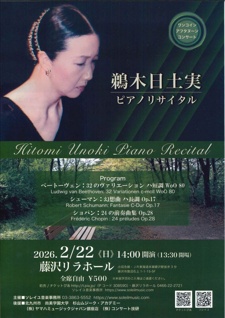 鵜木日土実ピアノ・リサイタル 2026.2.22
